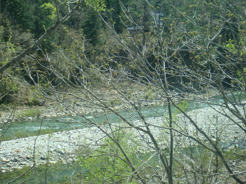 終於 雅子說我们要繞遠路走捷徑 離開馬路走山路 一路上 遊覽車司機聽著商家的指揮 走著當地人才知的小路 我们繞過塞車 到了用餐的地方 時間比預定還早 我们多了雅子講解介紹的時間