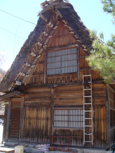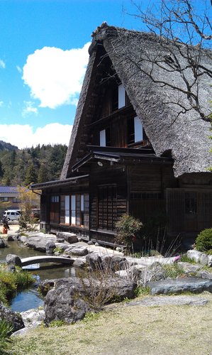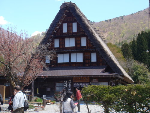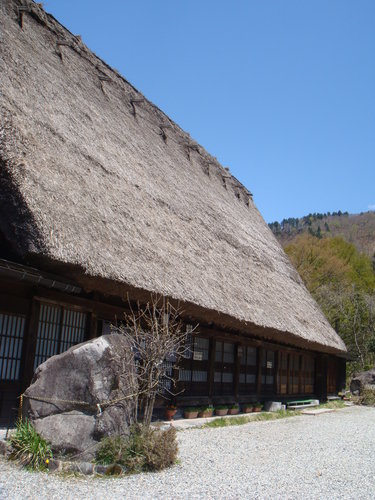 唉 我真的是無知當理性 假會 合掌屋可是當地人運用古人所累積的智慧 用蘆葦枝架構急斜面合掌形式的茅草屋頂 屋柱厚實 以粗大繩所捆綁 內部擺設應有盡有 冬暖夏涼 有人還可以建到五層高 光是看我们用餐的這間合掌屋就知道 內部擺設絕不亞於市區住家 還不是普通大哦 用餐區也不僅僅那一區噢