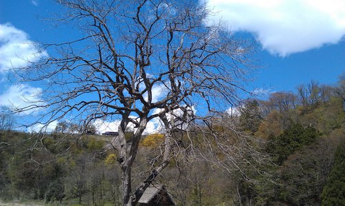 藍天白雲青山 加上遠處山頭的殘雪