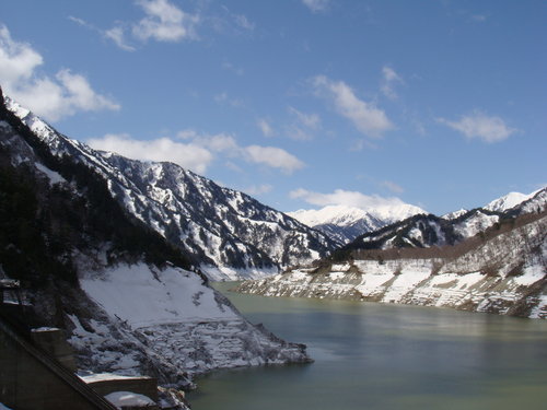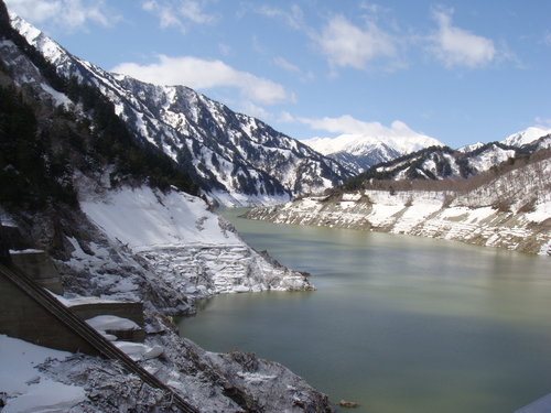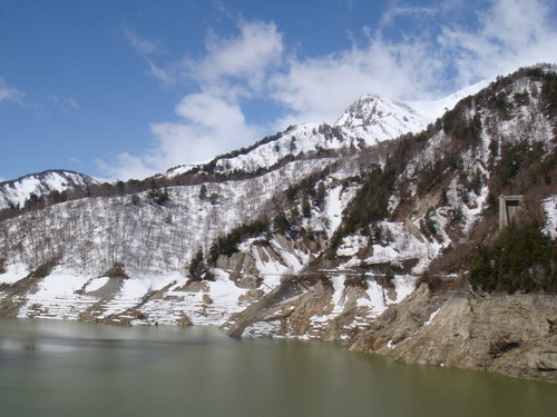 聽說水庫在冬季沒開山前是冰凍的 4/16開山後 我们來的時候已經解凍了 到了6月到10月間還會洩洪 而且水勢還很壯觀 變化之大 無法想像