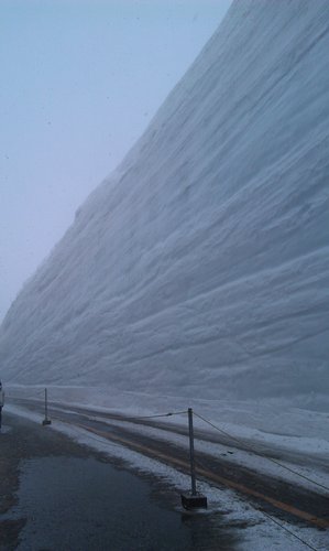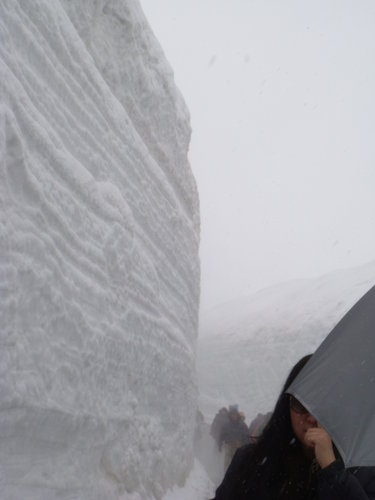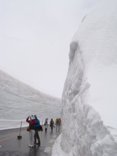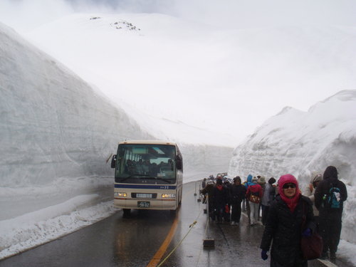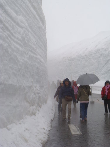 無軌電車的終點就是室堂 雪壁所在 標高兩千多 溫度當然是零下 立山最高峰海拔三千多公尺 一般人是無法上去的 聽說要上去的人得經過檢驗什麼高山病之類的 沒問題才能上最高峰
