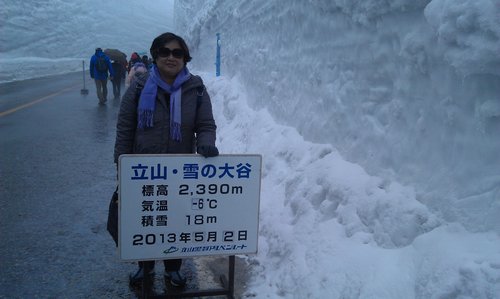 台灣生長的我 一路從看到遠遠山頭的白雪就興奮到不行了 置身雪國更是激動 也不管一片白茫茫照出來效果如何 相機死命拍 可惡的是 我的相機居然這時給我罷工 怎麼開機 它就是抖 抖 抖 我也知道它或許怕冷 我可是一路把它溫在我的羽絨衣裡 太不上道了 好多景致沒法拍 只好放棄 好在最後想到 我還有手機啊 趕快補強 也幸好在立山上太陽偶而露臉 還可拍些景致