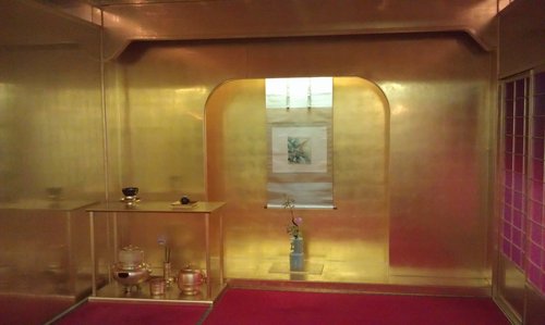 這一天 感謝領隊雅子控制得宜 不愧是十六年經驗的資深領隊(雖然她還很年輕) 我们沒有絲毫拖延 還能多一景點 參觀金澤有名的金箔工藝 喝了廠家招待的金箔茶 沾點貴氣 還看了一間貼滿金箔的黃金茶屋 裡面只有一個茶壺是純金的 沒多少錢啦 就六千萬而已啦 忘了問是日幣還是台幣 不過也夠嚇人了