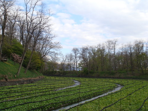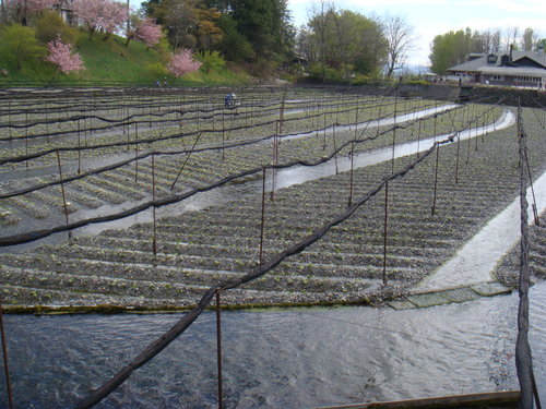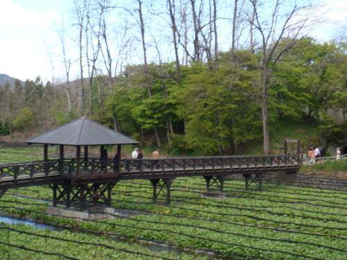只有領隊雅子告訴我们 山葵是種在山葵像後方的水裡 使用北阿爾卑斯山泉灌溉 水質清澈 清可見底