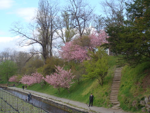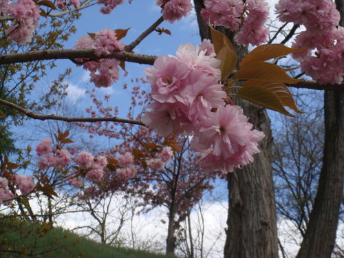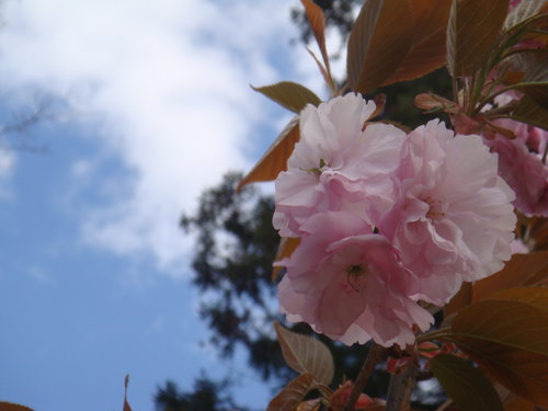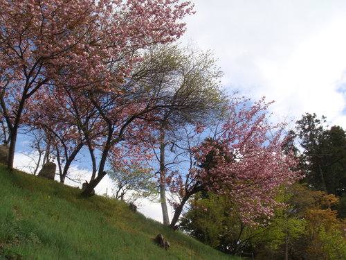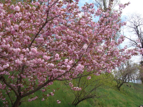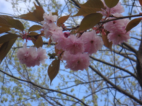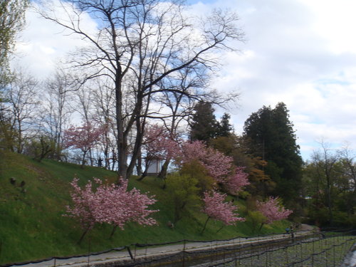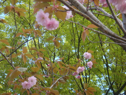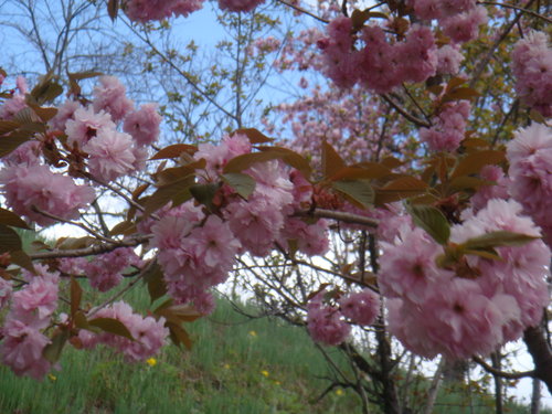 一直告訴自己 這次來是賞不到什麼櫻花了 有的話也是櫻花的新芽了 沒想到卻看到一株又一株的八重櫻 滿坑滿谷 見少識淺的我 只看過台灣薄薄幾瓣花瓣的櫻花 幾時看過八重花瓣的八重櫻