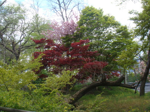 去年十月北海道賞楓之旅 去的太早 楓葉尚未紅 今年的賞櫻又太晚 櫻花謝的差不多了 誰知在這裡 春櫻秋楓一處開 真好